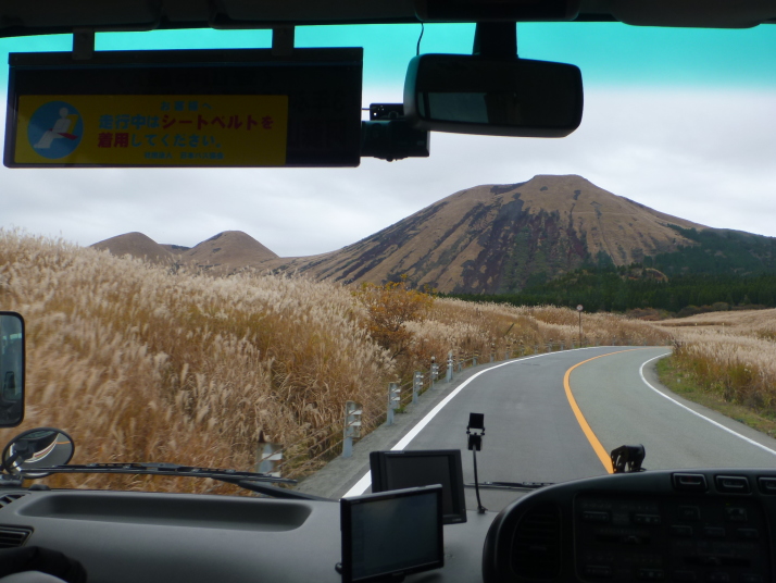 熊本空港から阿蘇に向かう途中、阿蘇の山の登山中