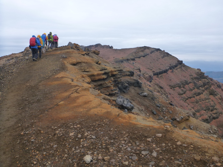 尾根まで登り切れば稜線伝いにお釜を眼下に見ながら中岳を目指す