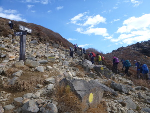 休憩後、先ずは本峰、久住山を目指す、分岐からちょっと急坂を登れば頂上だ