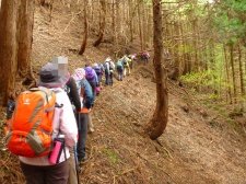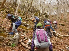 さくら峠からは急登と滑ればどこまでも落ちて行きそうなトラバース道が待ち構えていて皆慎重に…