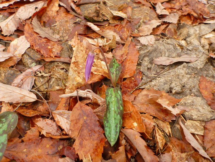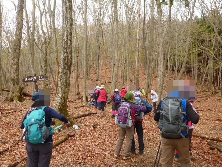そんなこんなでみのわ平到着だ。ここにはカタクリが群生しているが今日は寒くまだ咲いていない。