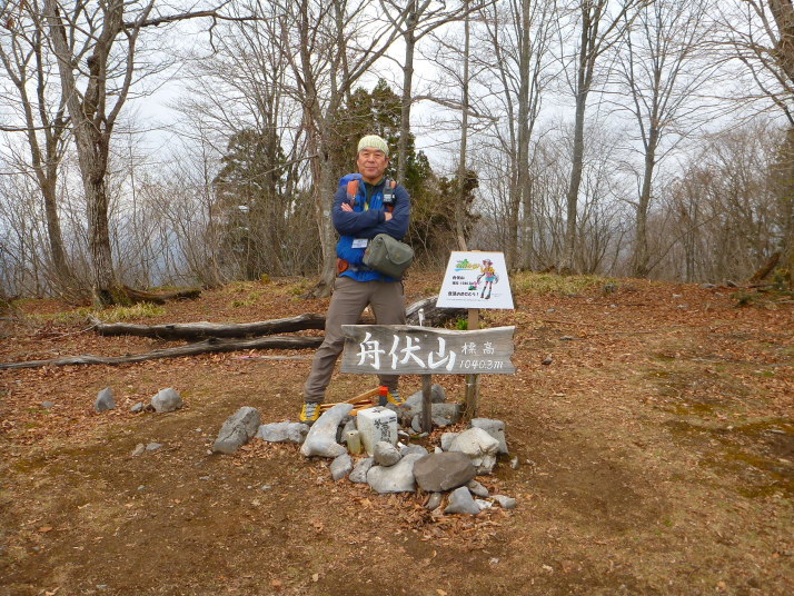 広い庭園、舟伏山の頂上に到着、反対側からの登山者4名ほどが丁度帰路に就くところで貸し切りの頂上を