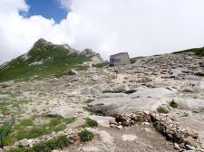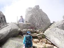 宝剣山荘、天狗荘を経て中岳で休憩、ここから一旦下り、テン場のある頂上山荘から一気に登って頂上へ