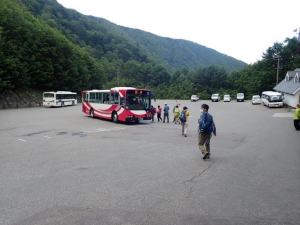 17:00の最終ロープウエイに乗り込み、しらび平でバスを乗り継ぎ菅の台へは17:40