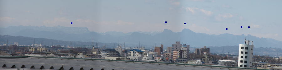 もう少し広範囲にみると、左に赤城山、右に袈裟丸山、皇海山方面、更に日光方面の山並みかな?
