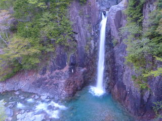 | 朝は快調に目が覚めて早々準備して谷へ出る 本流を眼下に見て滝の上のけもの道を少し歩けば 5m以上のタラの木が乱立していて、大きな芽は伸び放題だ どっちにしても手が届かんなぁ その脇が入川地点だが、まだ竿は出さない 大きな岩の連なる谷を登ればいつも目に止まる白糸の滝が 左岸から流れ落ちている、 写真に納め、岩と木々の同じような景色を右に左に眺めながら 竿を出すポイントを探す。 今回は一つ目の滝からかな? |