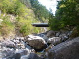 ゴルジュから少しずつ釣れるようになるが22p前後のリリースサイズばかりだ やがてゴルジュを抜けて一つ目の堰堤が見えて来た所のポイントで やったね!初の尺もの…31pだ、魚籠への初物だね、頂きます。 その後も大物らしき当たりを2〜3度感じるが手ごたえのある前に外れてしまい 合わせの感覚が少し早いかな?まだまだ未熟だね そんなこんなで次の大滝も空振りしながら途中で美味しそうなタラの芽を頂きながら 遡行を続ければ見覚えのある橋へ着く。林道はここまで延々と続いている訳で… 橋の下を潜り一気に開けた谷間をリリースしながらグングン進み二つ目の堰堤へ この辺りの水たまりに何やら花弁が絵を描いていて、見上げれば桜吹雪だ この辺りは標高1000mを越しているんだろう この堰堤で竿を岩に挟んでしまい『ポキッ!』やってしまいました。 予備竿に切り替えて釣上るが、途中27pを頂いて最終堰堤で納竿とした。 |