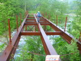 ![]() 季節がスリップ!桜が咲いていました(桜だと思うけれど?) その後は残雪が… ちょっと手強いヘツリで越した先には大雪渓? 大きなブリッジだ。その先を覗いて見ればずっと残雪が続いている |