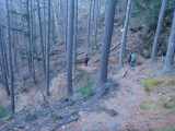 | 大山山頂で休憩した後、垂直の凍った岩場を鎖を頼りに慎重に下りれば、コメツガ林の中を アップダウンを繰り返し単調な登山道をグングン下る やがて十文字小屋に到着する 小屋ではテント一張り、暖房のストーブなのか?煙突から煙が出てて温かな雰囲気だ トイレを拝借して十文字峠を経て整備された林間の九十九折れ登山道をヒタスラ下り やがてゆるゆるの沢伝いの道へ 五里観音に出逢い、手を合わせ、更に沢沿いを行けば朝出かけの登山道に合流だ 丁度、大山神社で合流する。 登山口到着は4:00、真っ直ぐ下山のKko君はまだ到着していない 靴を脱ぎ帰路の準備をしていると10分遅れで二名が帰って来た 殆ど同時刻に下山で来て帰りの準備を整え、何とか明るい内に今宵の宿へ到着だ。 |