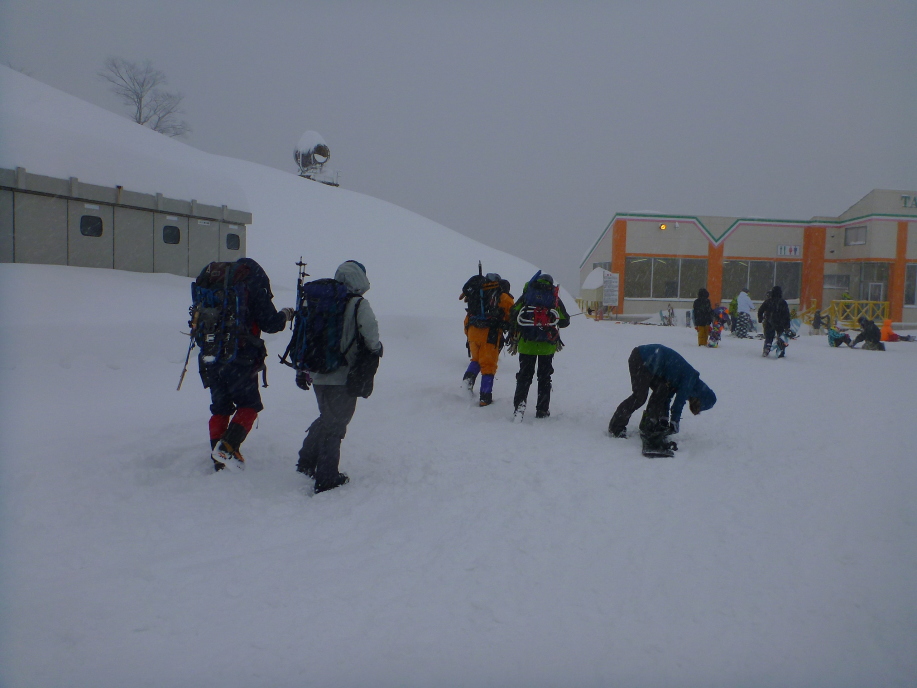 | 会山行の雪上訓練、大日ヶ岳で予定するが、意外に積雪が少なくスキー場オープンも気を揉まされたが 前日の13日にオープンが決まりぎりぎりセーフって訳で、今年一番の大寒波が到来する中 高鷲スノーパーク目指していざ! 会員6名での雪上訓練だ。 |