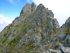 ② | 先ずは北穂分岐から南峰 稜線ピークに向けて 急峻な岩稜帯を登る |