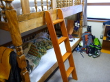 | 南斜面で新雪から遠退いている雪面は以外に重く苦労しながら雷鳥沢から隣の尾根へトラバース 誰も滑って居ないバーンを頂きますが体力が意外に続かず一二度休憩をはさみ称名川源流へ 再びシールを付けてテン場を横切り雷鳥荘へ登りかえす、 今日の行程終了 3:23…温泉浸かって休むにはいい時間だ 暫し山荘前からのパノラマを満喫し宿へ入る 雷鳥荘では二段ベッド4つの8人部屋に5人、満員でもゆったりだ 荷物を片づけ先ずは温泉へ…ゆったり汗を流して後は間違いなくビア待夢!! 暖炉のある談話室で一人寂しいながらも愚だグダと寛ぎました。 なかなか雰囲気があって意外に楽しい…小屋締め間近で枝豆ふんだんで100円也! |