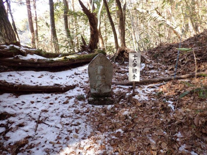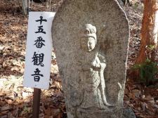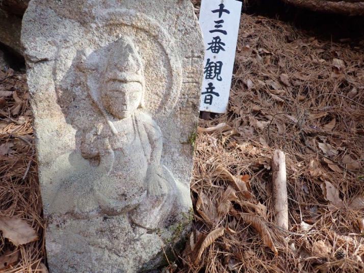 九十九折れに暫く登り分岐地点の三番観音様を過ぎて10番観音様で一息つく。