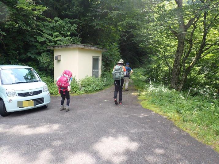 ゲート手前のWCをお借りした後そのままキャンプ場を車で登ると行き止まりになりここから準備して登山だ