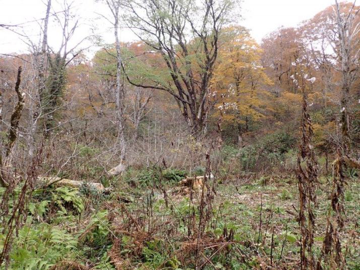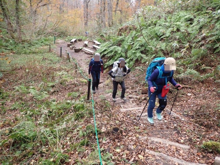 休憩後は往路を戻り分岐で左折、ブナ探勝路を目指す