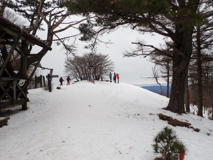 東屋、三角点があり里山らしく整備された広い頂上です